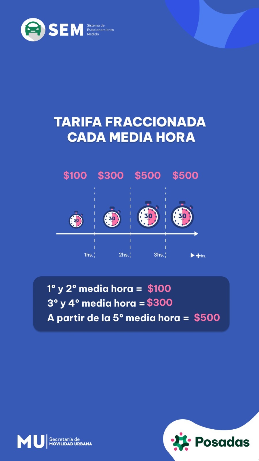 • Desde la 5ª media hora: $500