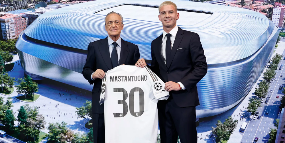 La presentación contó con figuras históricas del club como Emilio Butragueño, Roberto Carlos, Luis Figo y Santiago Solari. Un video repasó sus mejores jugadas en River y con la selección juvenil, provocando la emoción de su padre, Cristian. Mastantuono posó con la camiseta número 30, dorsal que usó en River y que pidió mantener. Aunque el número corresponde a la ficha del filial (Castilla), el club aclaró que es jugador del primer equipo a todos los efectos, y que la elección también le otorga flexibilidad en el mercado de pases hasta el 2 de septiembre.