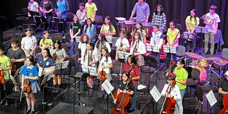 En el Teatro Lírico del Parque del Conocimiento se desarrolló el Concierto Sinfónico en el que participaron las orquestas del CEMU Allegro y Pizzicato, junto a la Orquesta Juvenil de Grillos, con cerca de 150 músicos que representaron a más de 20 colegios de la capital provincial, bajo la dirección del maestro Miguel Brizuela.