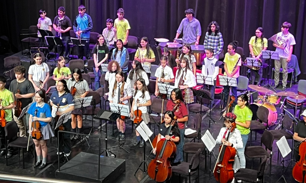 En el Teatro Lírico del Parque del Conocimiento se desarrolló el Concierto Sinfónico en el que participaron las orquestas del CEMU Allegro y Pizzicato, junto a la Orquesta Juvenil de Grillos, con cerca de 150 músicos que representaron a más de 20 colegios de la capital provincial, bajo la dirección del maestro Miguel Brizuela.