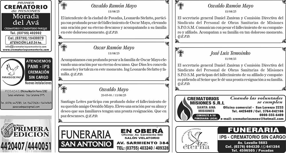 Tags: Fúnebres 15-08-2025