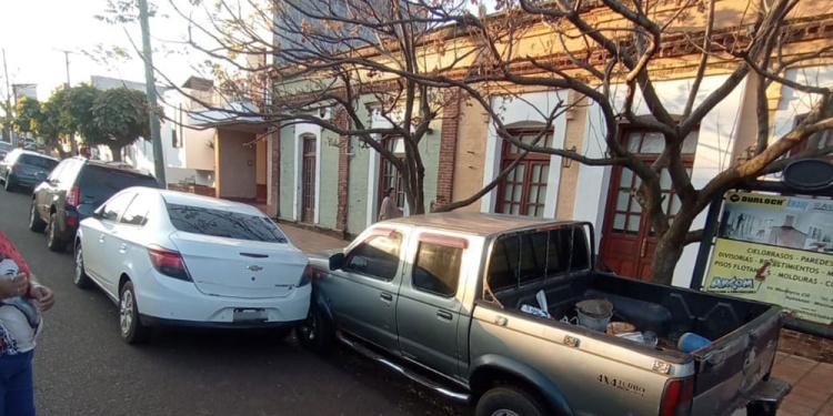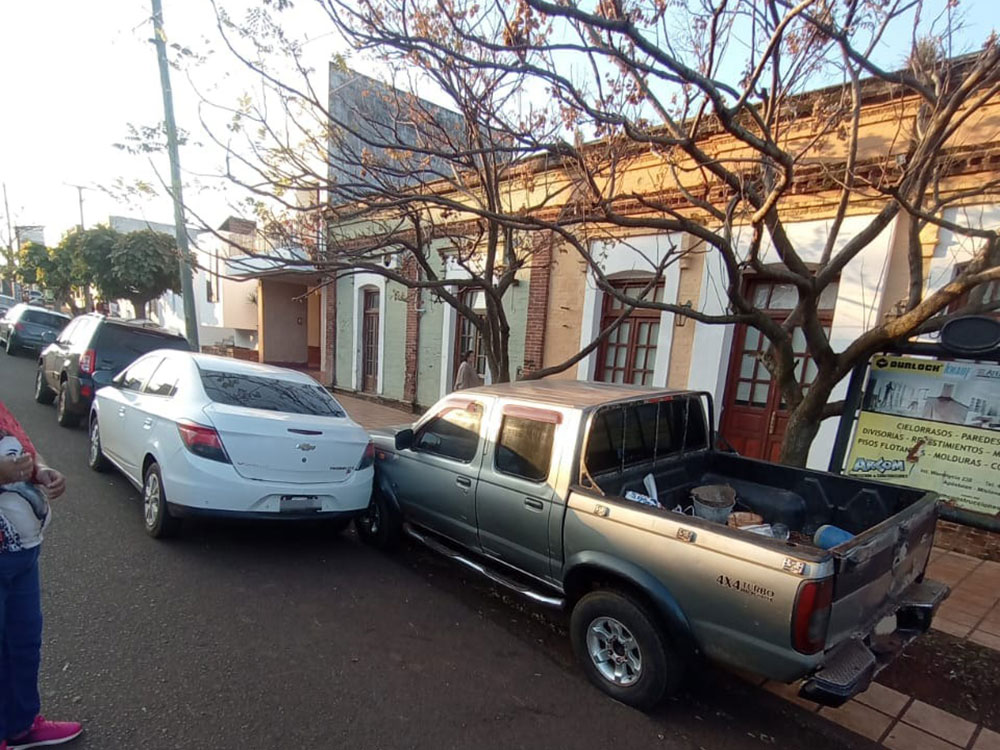 En la tarde de ayer jueves, una camioneta impactó contra una motocicleta estacionada y luego contra un automóvil en la esquina de las calles Belgrano y Warenycia de la ciudad de Apóstoles.