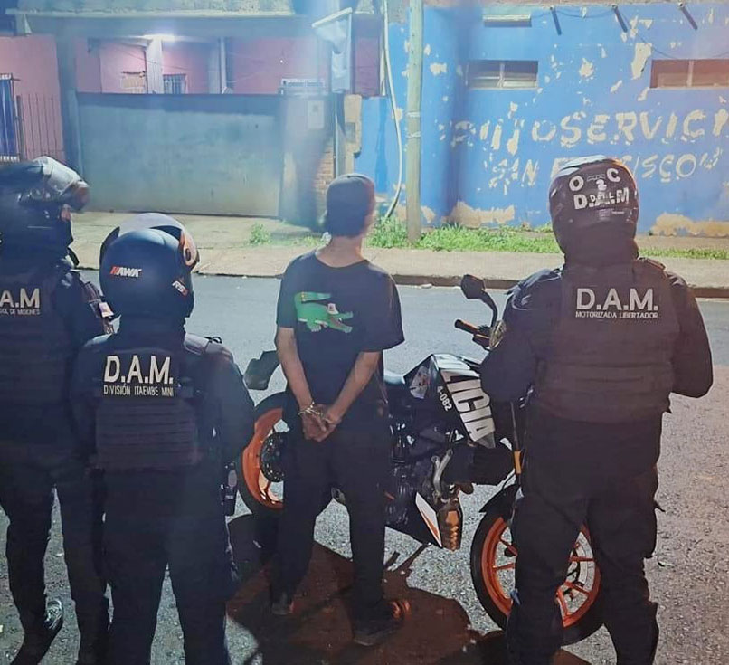 Más tarde, cerca de las 22.55 en la Chacra 183, la Policía arrestó a Rodrigo S. (34), quien merodeaba el lugar observando vehículos sin poder justificar su presencia. Se comprobó que poseía un pedido de detención por robo, requerido por el Juzgado Correccional y de Menores N.º 1.