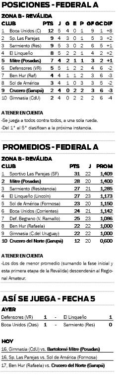 Por la quinta fecha de la Reválida B, Crucero del Norte y Bartolomé Mitre disputarán partidos claves y, aunque juegan de visitante, el objetivo en común es traerse los tres puntos a la Tierra Colorada.