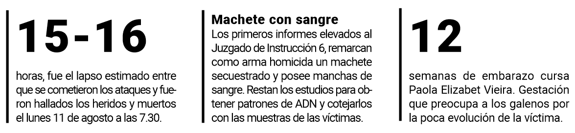 Hugo Ríos en tanto, mejoró de las lesiones de arma blanca y fue trasladado a una sala intermedia en el Hospital de Fátima. El hermano de Paola Vieira padece de discapacidad motriz que lo obligaba a estar postrado en una cama la mayor parte del día, remarcaron las fuentes contactadas por PRIMERA EDICIÓN.
