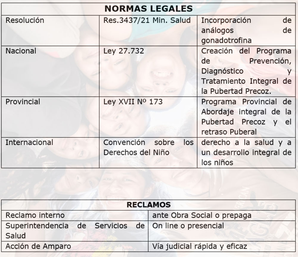 • Ley 27.732: Creación del Programa de Prevención, Diagnóstico y Tratamiento Integral de la Pubertad Precoz.  Recuperado en https://www.boletinoficial.gob.ar/detalleAviso/primera/295981/20231012