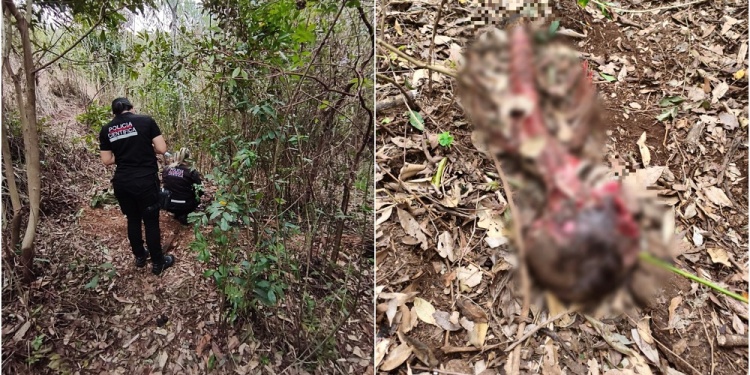 En el sitio, el médico policial identificó fragmentos de la columna vertebral unidos al cráneo, parcialmente consumidos por animales. Además, se hallaron prendas de vestir, cables y huesos también víctimas del fuego. Según las primeras estimaciones, la víctima tendría entre 30 y 35 años y sería desconocida para los pobladores de la zona.