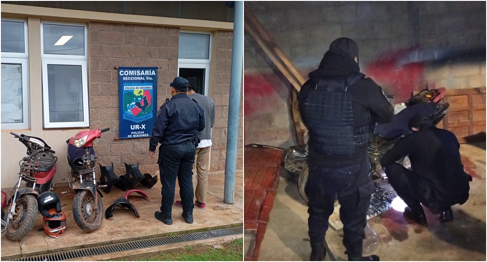 En el primer domicilio, ubicado sobre la calle Azaleas casi Bonpland, secuestraron llantas con cubiertas, un casco, pecheras plásticas, un caño de escape y otros elementos menores. En una segunda vivienda de la misma zona, incautaron dos motocicletas Zanella sin dominio y con plásticos faltantes, junto con una rueda, un faro, un carburador, un tambor de arranque, caños de escape y una patente.