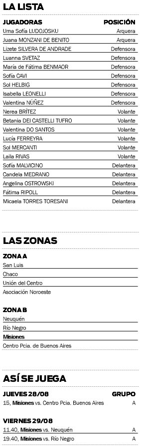 El debut de las misioneras será el jueves 28 a partir de las 15, cuando enfrente a Centro de Buenos Aires. Luego, volverá a las canchas el viernes 29 desde las 11.40, cuando se mida ante Neuquén y cerrará la fase de grupos frente a Río Negro, ese mismo día, desde las 19.40.