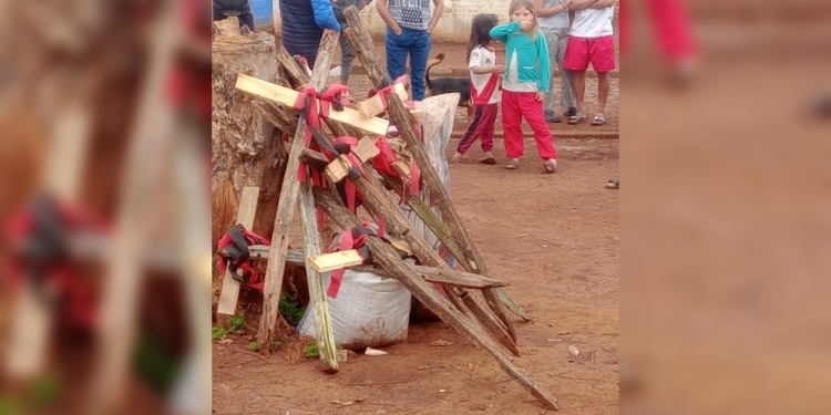 No conforme con esto, el sábado y domingo pasado los guaraníes encontraron en la chacra cruces de madera con paños rojos y negros, “en algunos lugares estaban estas cruces de madera, unas diez, y en los trillos que usamos para ir al monte pusieron otras cruces hechas con sal sobre el suelo… no sabemos si los que hicieron eso creen en hechicerías o buscan asustarnos, pero claro que las familias están viviendo con temor por todo lo que está pasando”, contó Benítez.