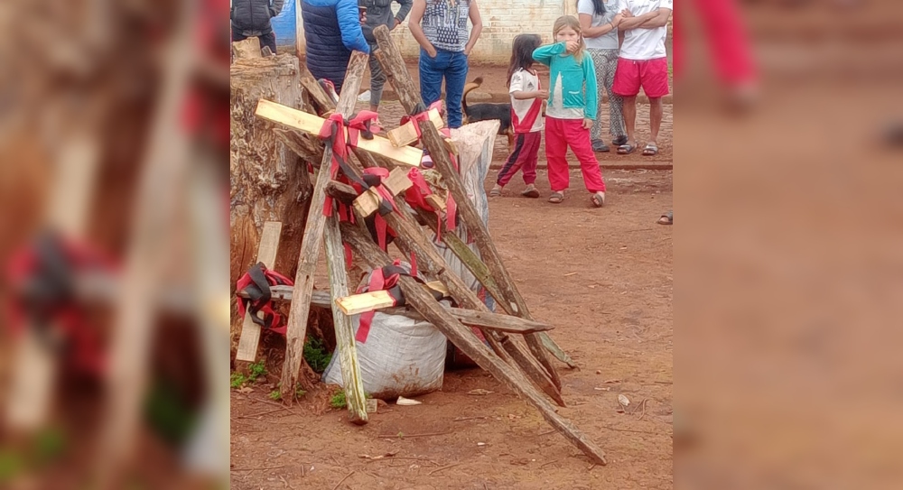 No conforme con esto, el sábado y domingo pasado los guaraníes encontraron en la chacra cruces de madera con paños rojos y negros, “en algunos lugares estaban estas cruces de madera, unas diez, y en los trillos que usamos para ir al monte pusieron otras cruces hechas con sal sobre el suelo… no sabemos si los que hicieron eso creen en hechicerías o buscan asustarnos, pero claro que las familias están viviendo con temor por todo lo que está pasando”, contó Benítez.