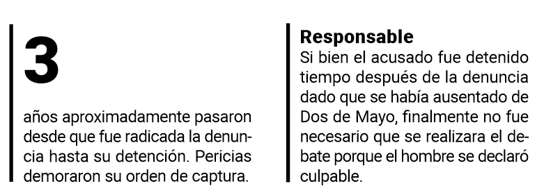 La denuncia del caso fue radicada por la madre de las menores en la Comisaría de la Mujer de Dos de Mayo. Las víctimas, tenían en ese entonces 10 y 15 años respectivamente. Desde hacía tiempo que el hombre de profesión changarín, había comenzado a manosear a una de sus hijas de mayor edad, siempre bajo la cobertura de la amenaza y el silencio que se sumaba a la figura de autoridad como padre.