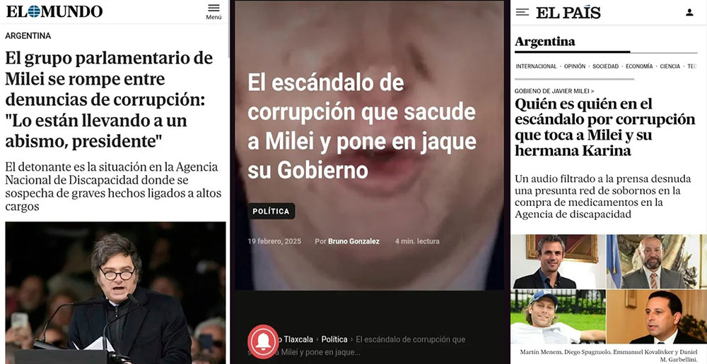 El Mundo (España): Informó sobre la crisis política interna que generó el caso, señalando que “El grupo parlamentario de Milei se rompe entre denuncias de corrupción”.