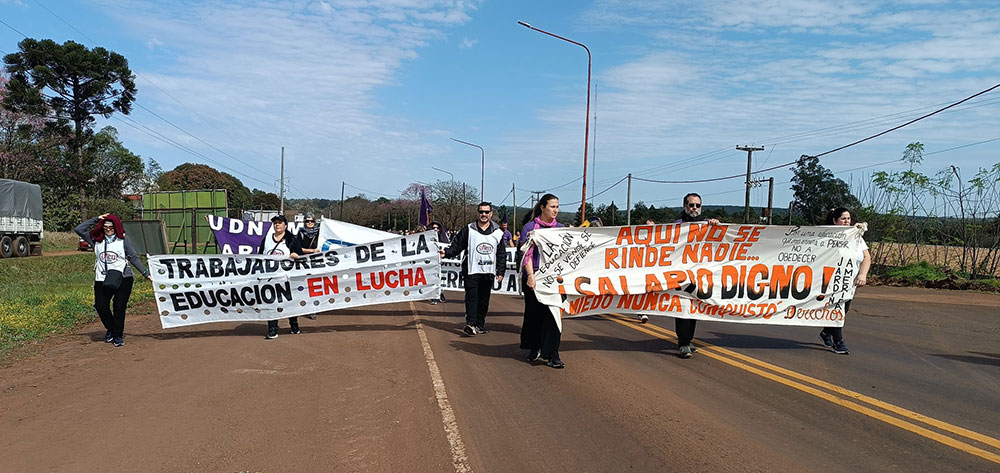 En este contexto, el jueves de la semana pasada, los docentes se concentraron en Jardín América. Y para esta semana ya convocaron a un paro de 24 horas para el miércoles 27, ese día se concentrarán desde las 8 de la mañana en Oberá, a la altura del arroyo Ñacanguazú.