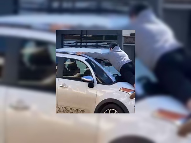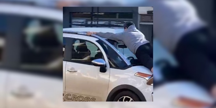 El automovilista, que se negó a exhibir los papeles, encendió el motor para retirarse y en ese momento el otro hombre se subió al capó, permaneciendo allí mientras el vehículo avanzó aproximadamente 800 metros.