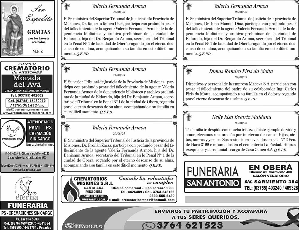 Tags: Fúnebres 30-08-2025