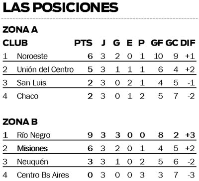 En la Zona A, Noroeste cerró primero, seguido por Unión del Centro. En tercer lugar quedó San Luis y Chaco finalizó último.