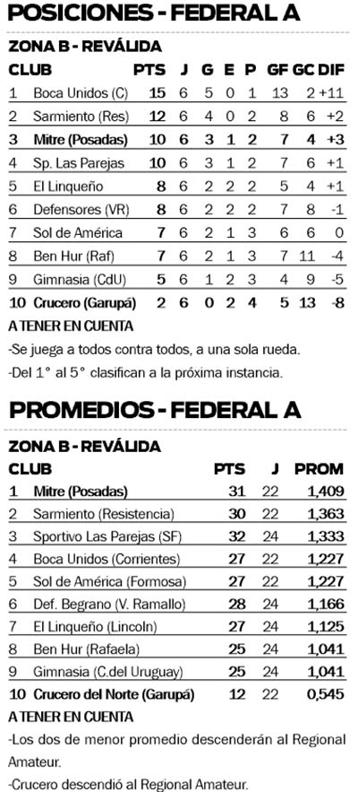 La mirada ahora para los dirigidos por Miguel “Pico” Salinas está puesta en meterse entre los cinco mejores de la Reválida B y avanzar así a la segunda fase, objetivo al que podría acercarse hoy en caso de una victoria. Después, Mitre deberá recibir a El Linqueño y cerrará en Resistencia ante Sarmiento, en las dos últimas fechas de la instancia.