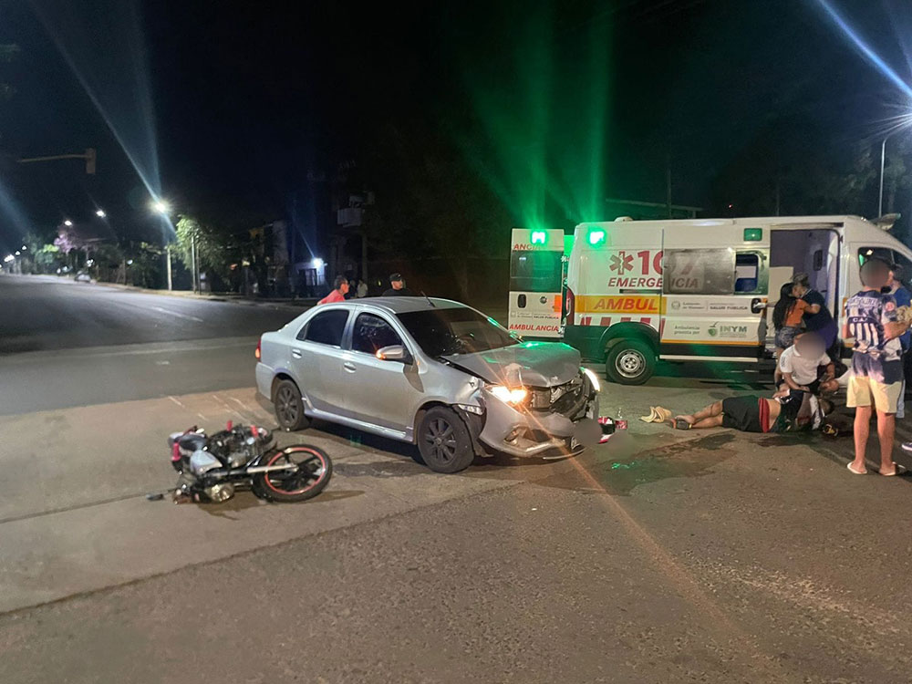 El siniestro se registró alrededor de las 00:05 horas, cuando un automóvil impactó contra una motocicleta en la que viajaban un hombre de 37 años y una joven de 16. Ambos sufrieron lesiones y debieron ser asistidos por personal médico.