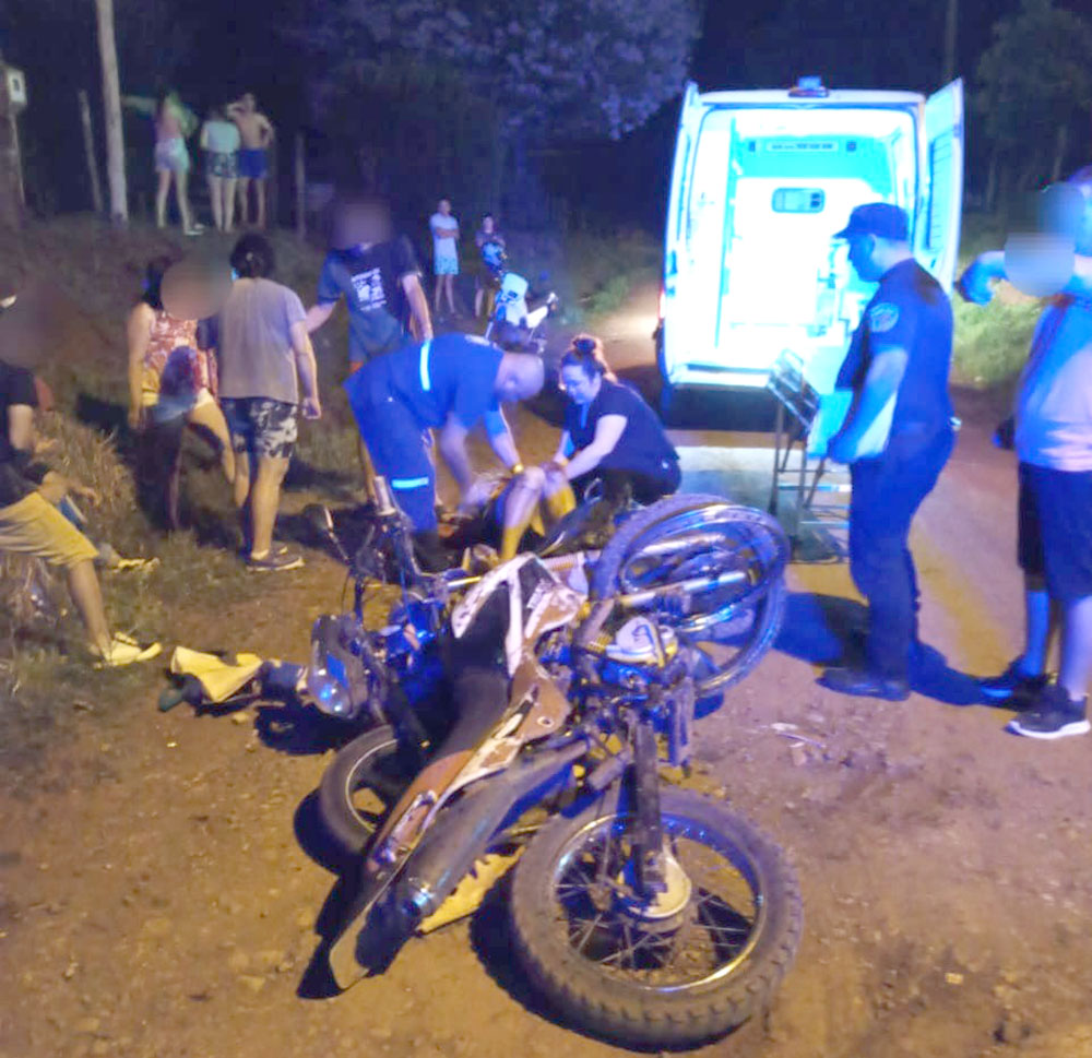 Según informó la Policía, una pareja que circulaba en una Brava 150 cc chocó contra una Corven Triax 150 cc en la que viajaban dos jóvenes. Tras el impacto, los ocupantes de ambos rodados fueron trasladados al hospital local, aunque dos de los heridos debieron ser derivados a Posadas por la gravedad de sus lesiones.
