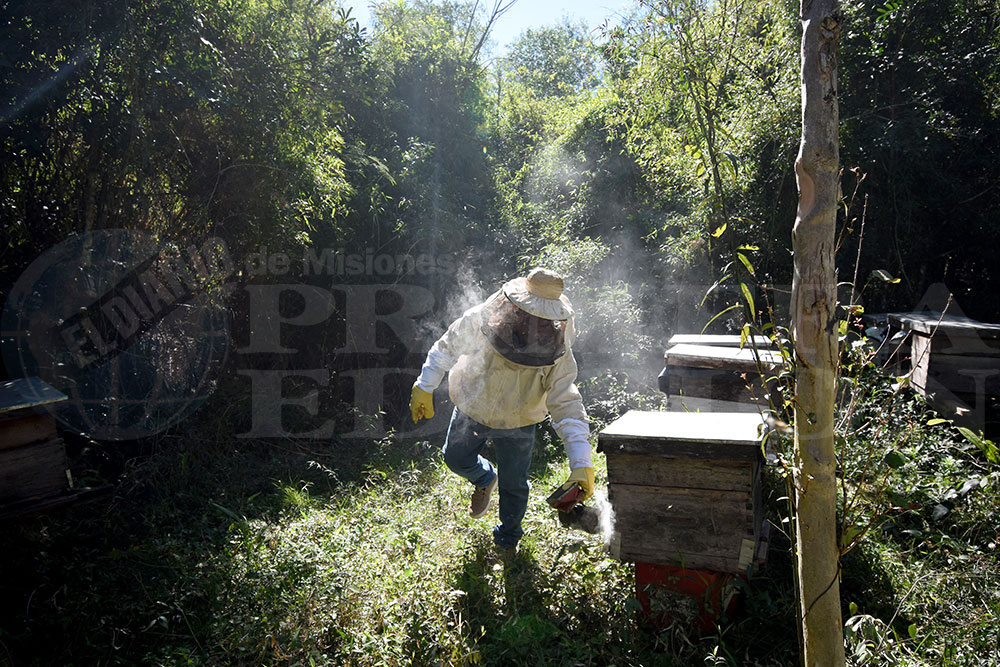 “Uno siempre piensa, y por ahí sueña también, pero las condiciones no siempre ayudan: el lugar, la situación. En Posadas hicimos un intento, pero no es lo aconsejable. La única manera de ser verdaderamente apicultores era venir a estos lugares”, dijo Marcos mostrando el monte alrededor.