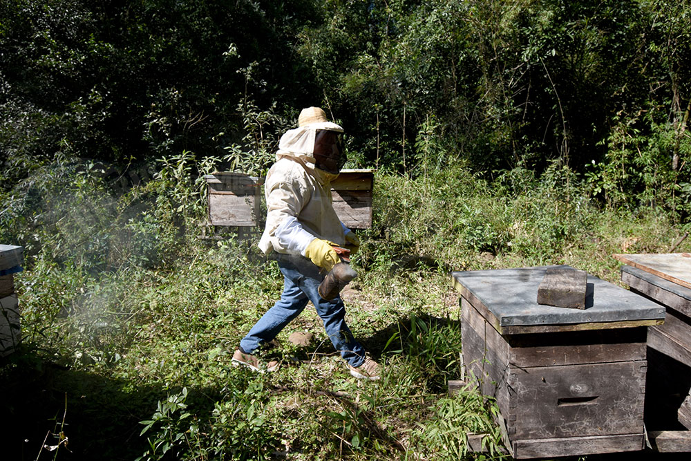 “Es como algo zen, porque cuando entras al apiario, que tiene que ser rápido, no se puede demorar más de una hora en cada cosecha, tenés que desconectar lo que traes de afuera y para conectarte con lo natural. Las abejas son seres sumamente sensibles, reconocen olores, estados de ánimo, hasta tu rostro. La presencia humana las estresa sobremanera y las puede llevar a la muerte. Hay que respetar su tiempo, porque si no hay abejas, tampoco hay vida. Si todas las abejas del mundo murieran, el planeta tendría como mucho 4 años y empezaría a apagarse. Son la energía vital del mundo”, aseguró con ojos brillantes.