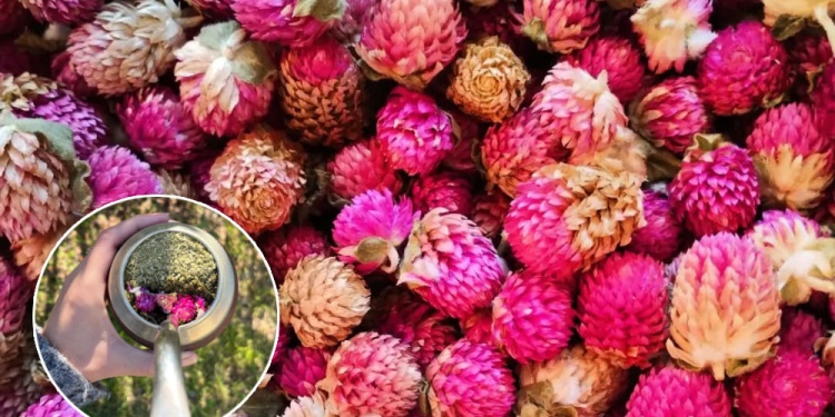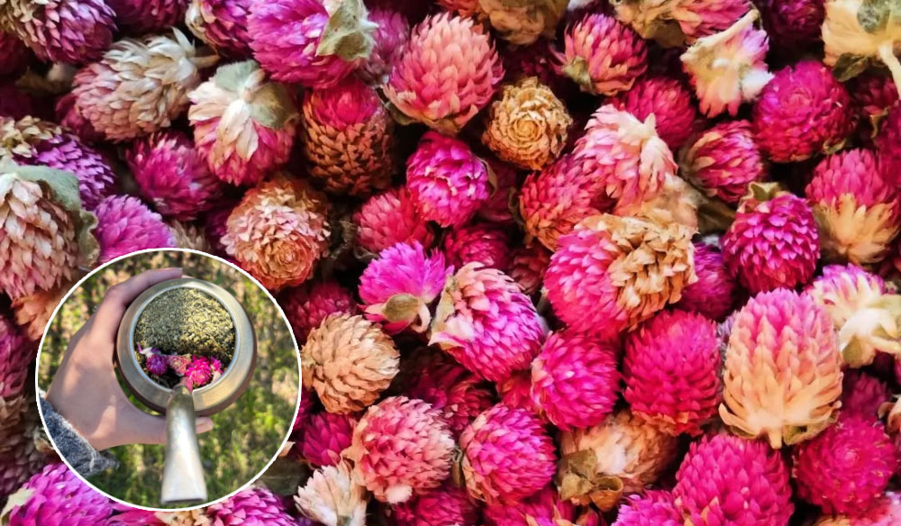 Las flores de esta hierba viven mucho tiempo, de ahí su nombre: siempreviva. Son perennes, crecen hasta unos 40 centímetros de altura. Su nombre científico es “Gomphrena perennis”.
