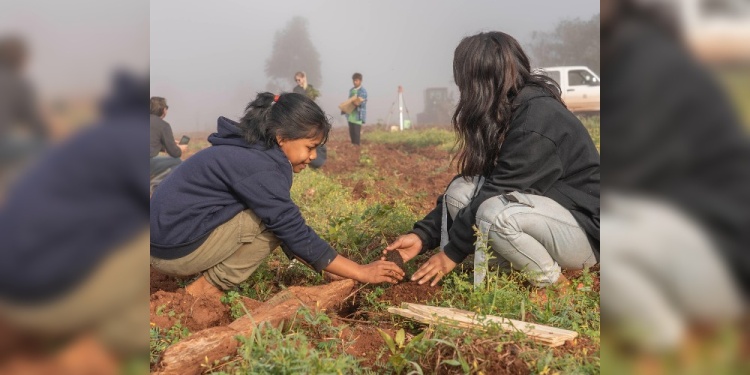 Agregó que “la acción consistió en la plantación de doscientos árboles nativos frutales, utilizando el espacio de una hectárea de yerba mate, todo en el marco de un proyecto que combina saberes comunitarios con formación académica y extensión universitaria”.
