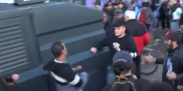 Minutos antes de su llegada, alrededor de las 18:40, se produjeron incidentes afuera del club entre un militante libertario y vecinos de la zona. Según la transmisión de Crónica TV, un gesto desencadenó la confrontación. “Le hizo un gesto de mono”, señalaron desde el canal. La situación derivó en empujones y golpes de puño, aunque no llegó a desmadrarse.