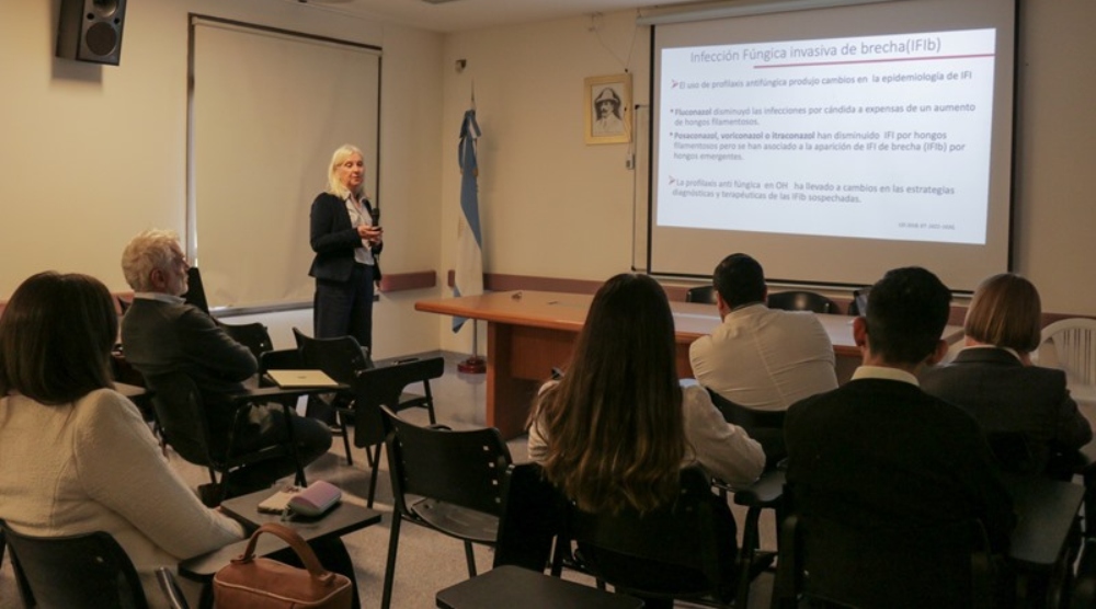 El doctor Gustavo Méndez, del servicio de Infectología del Madariaga presentó las ponencias que brindaron la jefa del Servicio de Infectología del Hospital Británico de Buenos Aires, Rosana Jordán y el hematólogo coordinador del área de Trasplante Hematopoyético del Hospital Austral, Gustavo Kuminski.