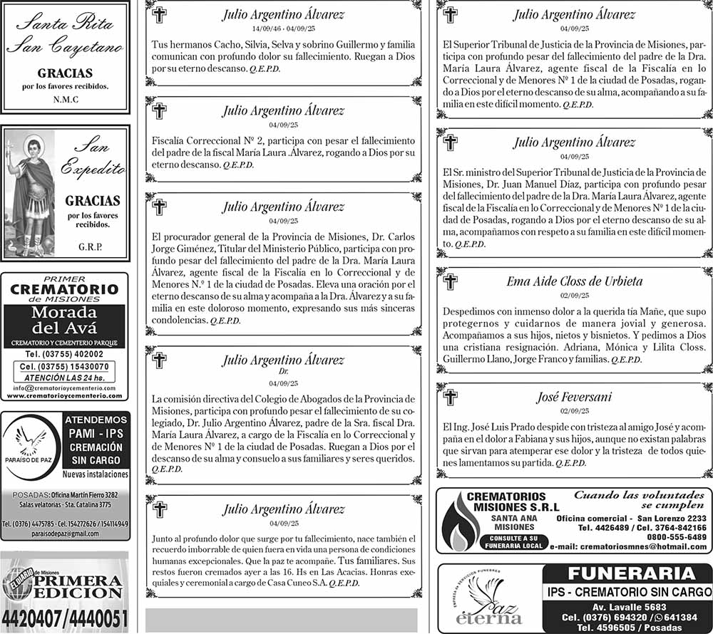 Fúnebres del Viernes 5 de Septiembre de 2025