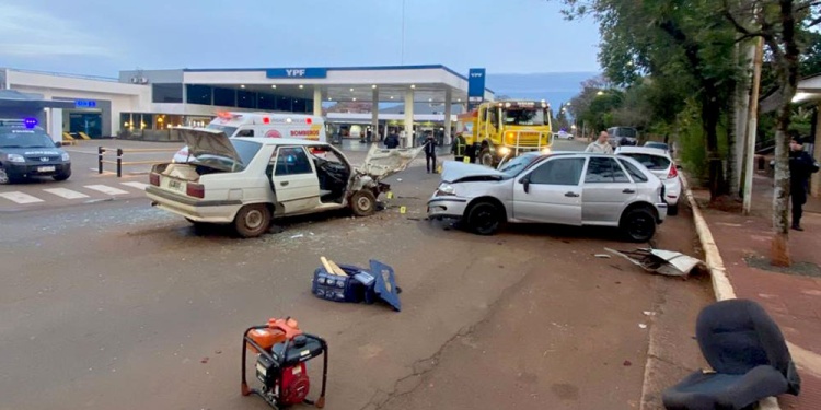 Un fuerte siniestro vial se registró en la madrugada de este domingo, alrededor de las 6.30 horas, en la avenida San Martín casi calle Las Heras de Puerto Rico, cuando un Volkswagen Gol y un Renault 9 colisionaron de manera frontal.