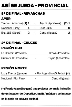 Además, en la Villa Olímpica de Puerto Piray, Nacional se hizo fuerte y volvió a vencer a 9 de Julio, ahora por 1-0, con gol de Pablo Reis. Tras el 4-2 con el que había ganado en la ida, el Nacio avanzó a cuartos y allí se medirá con Central Iguazú.