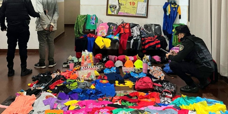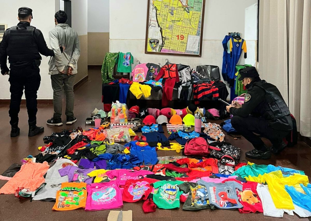 Se incautaron más de 100 artículos, entre los que figuran 34 disfraces infantiles de Halloween, mochilas, remeras, juguetes, encendedores, vasos térmicos y un cuchillo de cocina que habría sido utilizado para forzar la chapa del techo y así facilitar el ingreso.