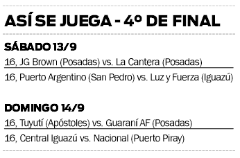 Con los duelos que sostendrán Brown vs. La Cantera y Puerto Argentino vs. Luz y Fuerza, comienza la carrera a la final provincial. Tuyutí vs. Guaraní y Central Iguazú vs. Nacional se medirán el domingo.