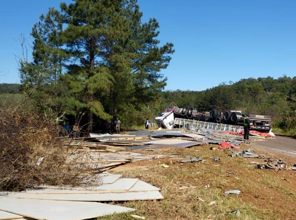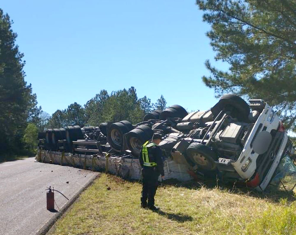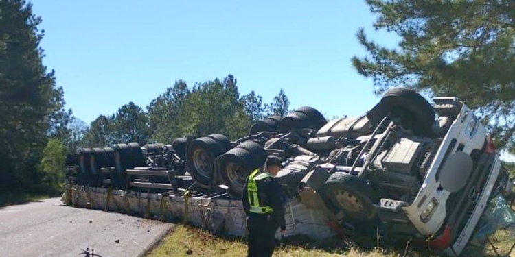 Un camión Mercedes Benz que transportaba placas de madera despistó y volcó en la mañana de este miércoles en la ruta provincial 211, a la altura del kilómetro 34, en Dos de Mayo. A pesar de lo llamativo del accidente, el conductor, de 42 años, resultó ileso y únicamente hubo daños materiales.