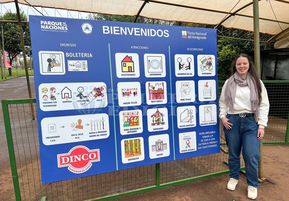 Carteles con pictogramas en las entradas y sectores clave del predio, menú en braille y macrotipo acompañado por un código QR con audiodescripción y la “hora amigable”, son algunas de las incorporaciones que ha logrado impulsar el área de inclusión del Parque de las Naciones para esta nueva edición de la Fiesta del Inmigrante.