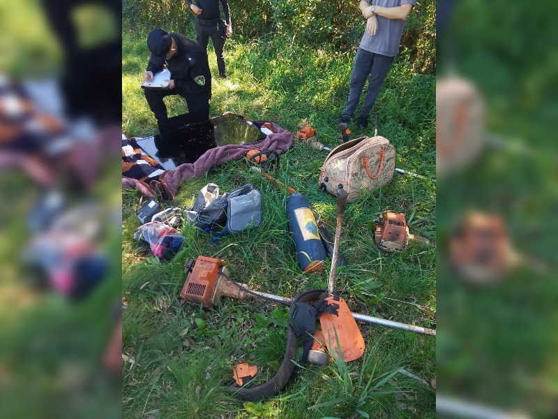 De inmediato, los efectivos iniciaron la búsqueda. A unos 400 metros del domicilio, entre plantaciones de yerba mate y té, encontraron ocultos entre malezas un televisor, tres motoguadañas, una motosierra, una carpa con accesorios, mochilas, bolsos, controles de TV y aire acondicionado, un decodificador, una cámara, un horno eléctrico y otros elementos. Todo fue reconocido por la denunciante como de su propiedad.