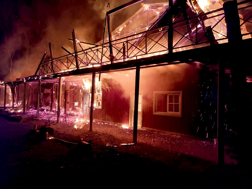 Las pérdidas fueron totales, pero no había personas alojadas al momento del siniestro. Bomberos y voluntarios trabajaron durante horas para contener las llamas.