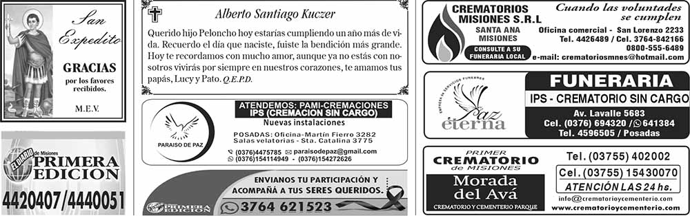 Fúnebres del Viernes 12 de Septiembre de 2025