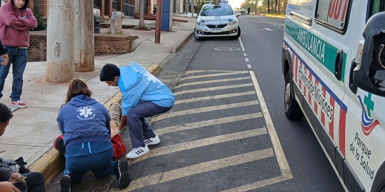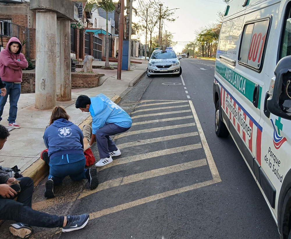 Dos jóvenes resultaron heridos este sábado por la mañana en Posadas luego de que la motocicleta en la que circulaban fuera impactada por un automóvil Peugeot blanco en la esquina de la avenida Urquiza y calle 69.