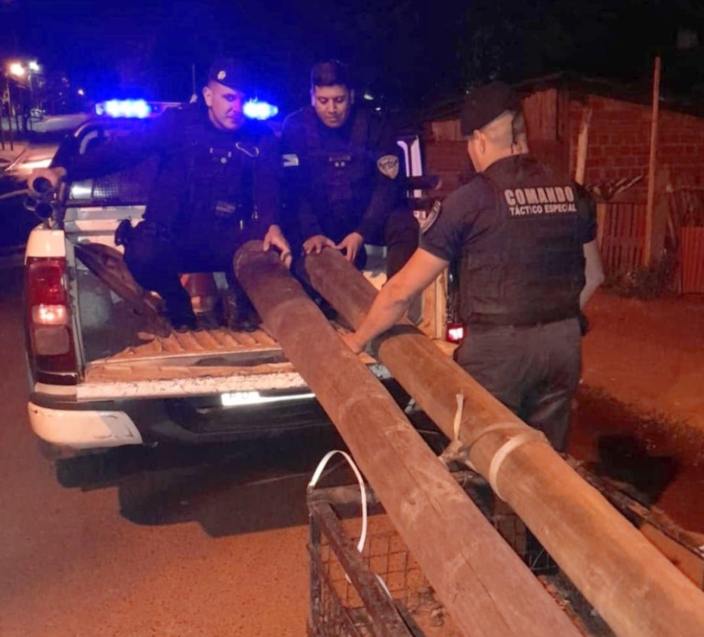 Según informó la Policía de Misiones, el hecho fue detectado por el sistema de videovigilancia, lo que permitió un rápido despliegue por parte de los efectivos de la comisaría 13ª. Los sospechosos fueron localizados y demorados cuando intentaban huir del lugar cargando uno de los postes.