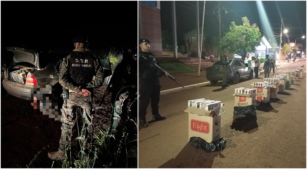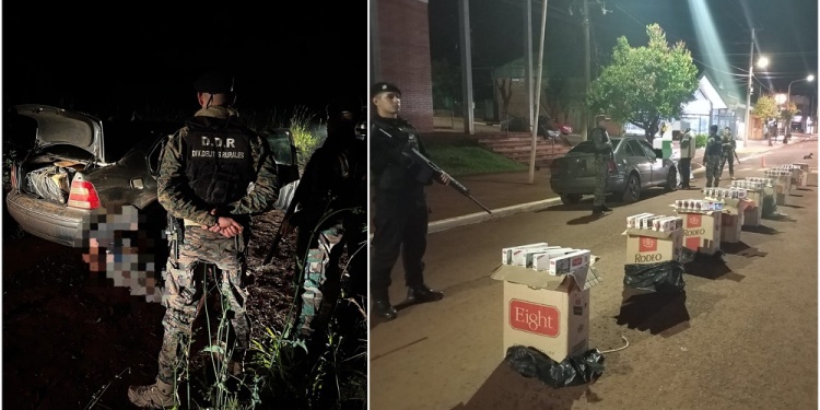 La Policía activó un operativo cerrojo que logró interceptar el vehículo a pocos metros de la huida. En el lugar fueron detenidos dos hombres de 24 y 36 años que viajaban en el automóvil. Durante la inspección, los efectivos hallaron 10 cajas con 5.000 atados de cigarrillos de origen extranjero, los cuales carecían de los permisos aduaneros correspondientes.