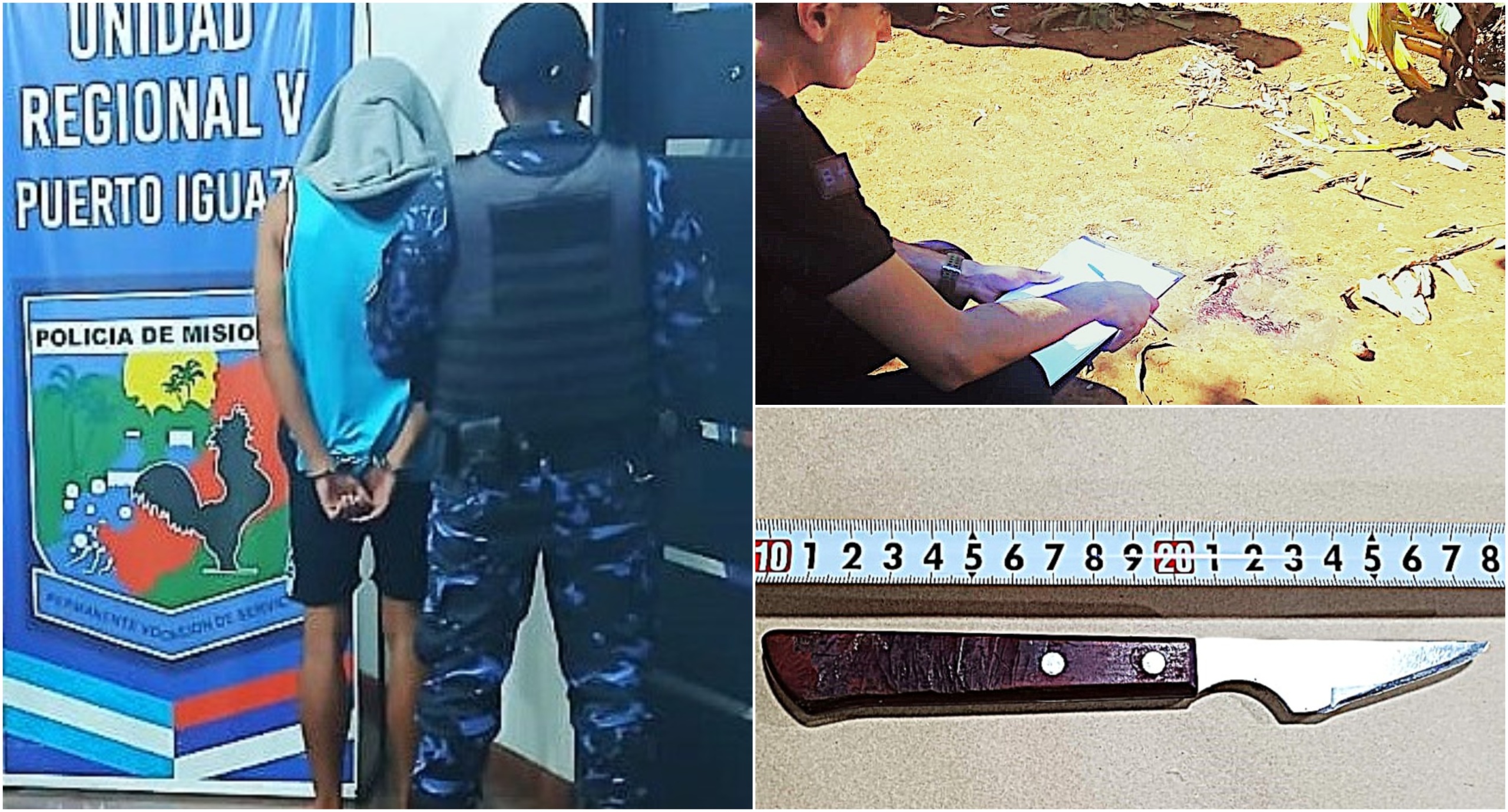 Quedó tirada en la tierra y el agresor se dio a la fuga tras arrojar el cuchillo. Minutos después fue aprehendido.