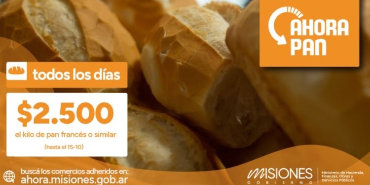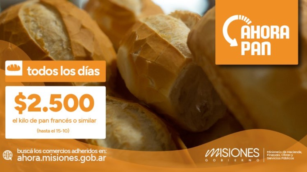 El Gobierno de Misiones confirmó que el programa Ahora Pan seguirá vigente con un nuevo valor máximo de $2.500 por kilo, que regirá hasta el 15 de octubre, fecha en la que volverán a evaluarse los términos de la iniciativa.
