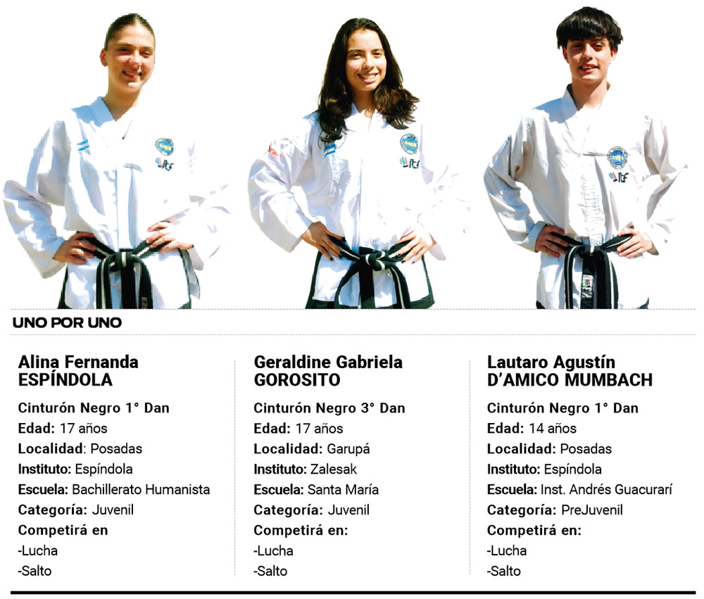El tiempo pasa un poco más lento para Alina Espíndola (17), Geraldine Gorosito (17) y Lautaro D’Amico (14). Y es que los tres no ven la hora de que llegue el día. ¿Qué día? El del debut en el Mundial Juvenil de taekwondo ITF que se desarrollará del 7 al 11 de octubre en Croacia.