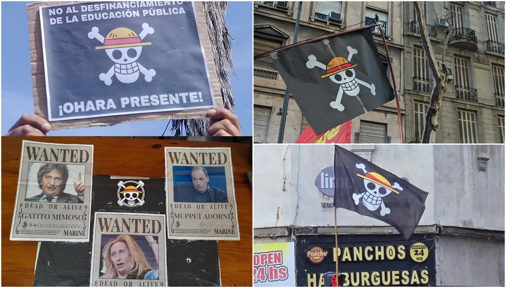 Durante las recientes movilizaciones en Argentina contra el ajuste presupuestario, en defensa de la educación pública, las universidades, el Hospital Garrahan y en contraposición al sistema de ajuste impulsado por el presidente Javier Milei, la bandera pirata de los sombreros de paja comenzó a ondear junto a los tradicionales símbolos de protesta.