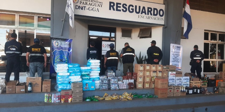 Entre la mercadería confiscada se encontraron cajas de vinos, aceites de girasol y de oliva, desinfectantes, productos de limpieza, pañales, caramelos, harinas y café, entre otros. La gran mayoría de origen argentino e ingresado al país vecinos por vías ilegales, trascendió.