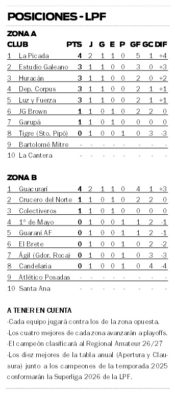 En el único encuentro que se disputó en la jornada de sábado por la suspensión de varios duelos, en el Acceso Sur, Andrés Guacurarí y La Picada empataron 1-1, por la segunda fecha del Torneo Apertura de la Liga Posadeña de Fútbol.