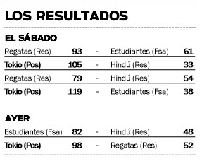 Tokio conquistó así tres victorias en igual número de presentaciones, ya que el sábado había derrotado en primer turno a Hindú de Resistencia (105-33) y posteriormente a Estudiantes de Formosa (119-38).